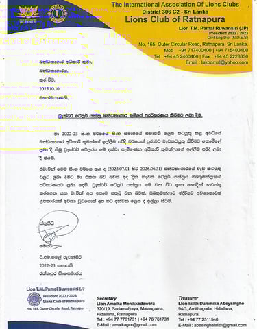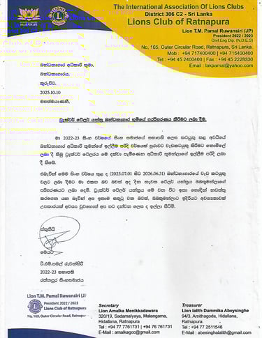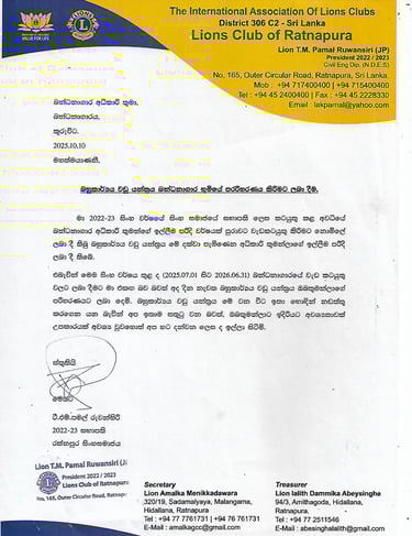 July 1st, 2025 | Lions Club of Ratnapura – District 306 D7